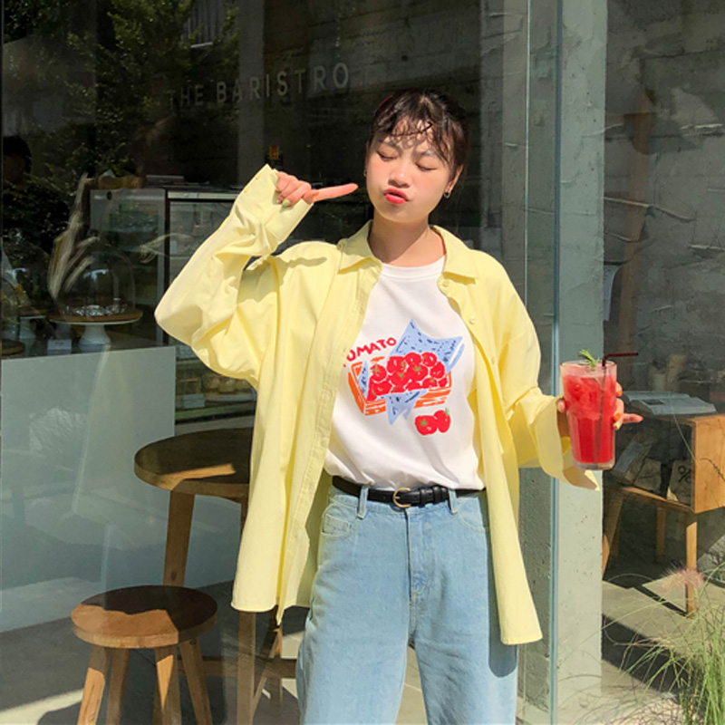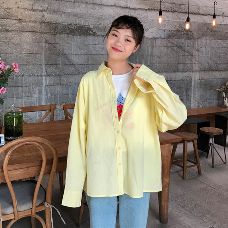 📚 百思朵鹅黄色衬衫淡黄色上衣芒果黄小鸡黄棉宽松长袖奶油黄防晒衣