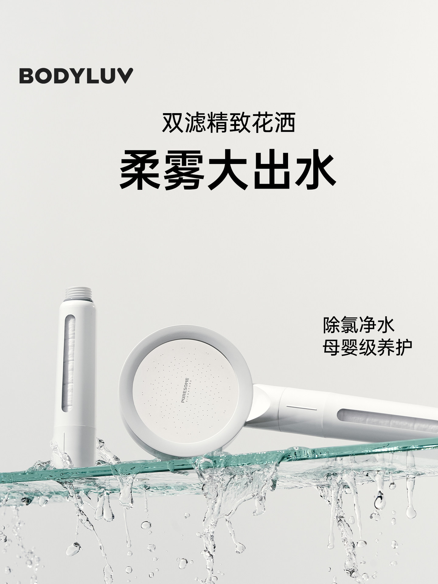📚 Bodyluv大面板过滤花洒淋浴喷头无增压过滤器洗澡手持净水除氯
