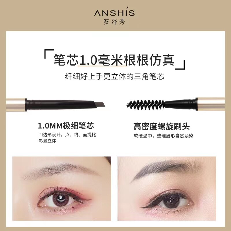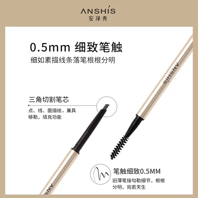 📚 安泽秀纤柔立体双头眉笔送替换装立体自然防水防汗不易脱妆持久