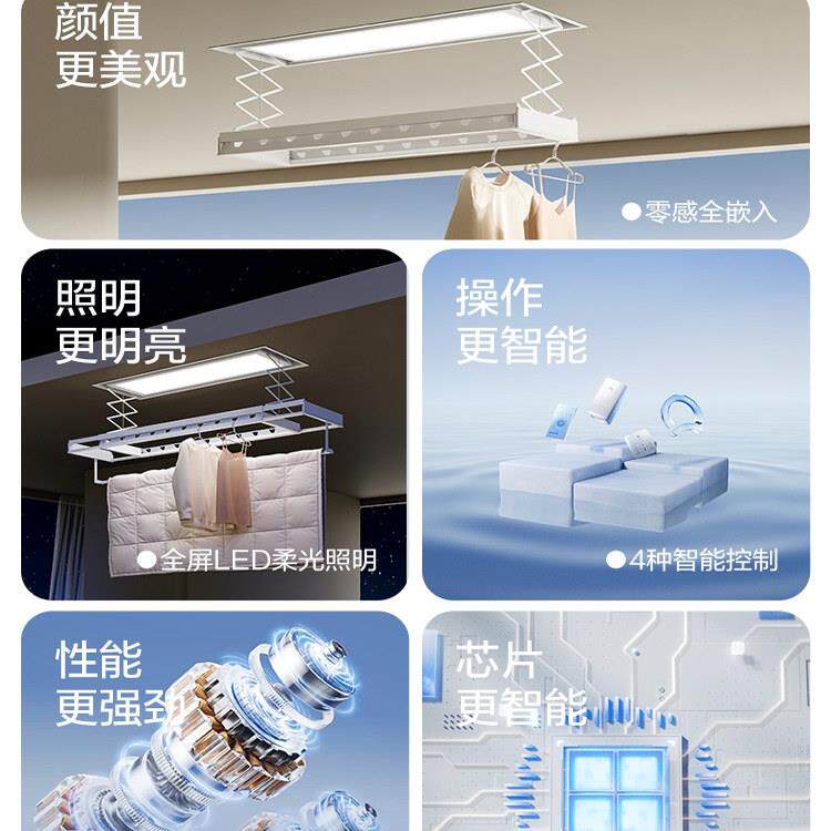 📚 郁金香隐形晾衣架电动嵌入暗隐藏阳台升降超薄晒晾衣杆家用晒衣架