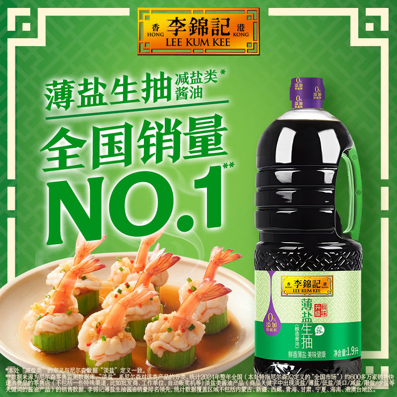 📚 李锦记薄盐生抽酱油1.9L家用商用大桶酿造酱油官方正品烹饪调料
