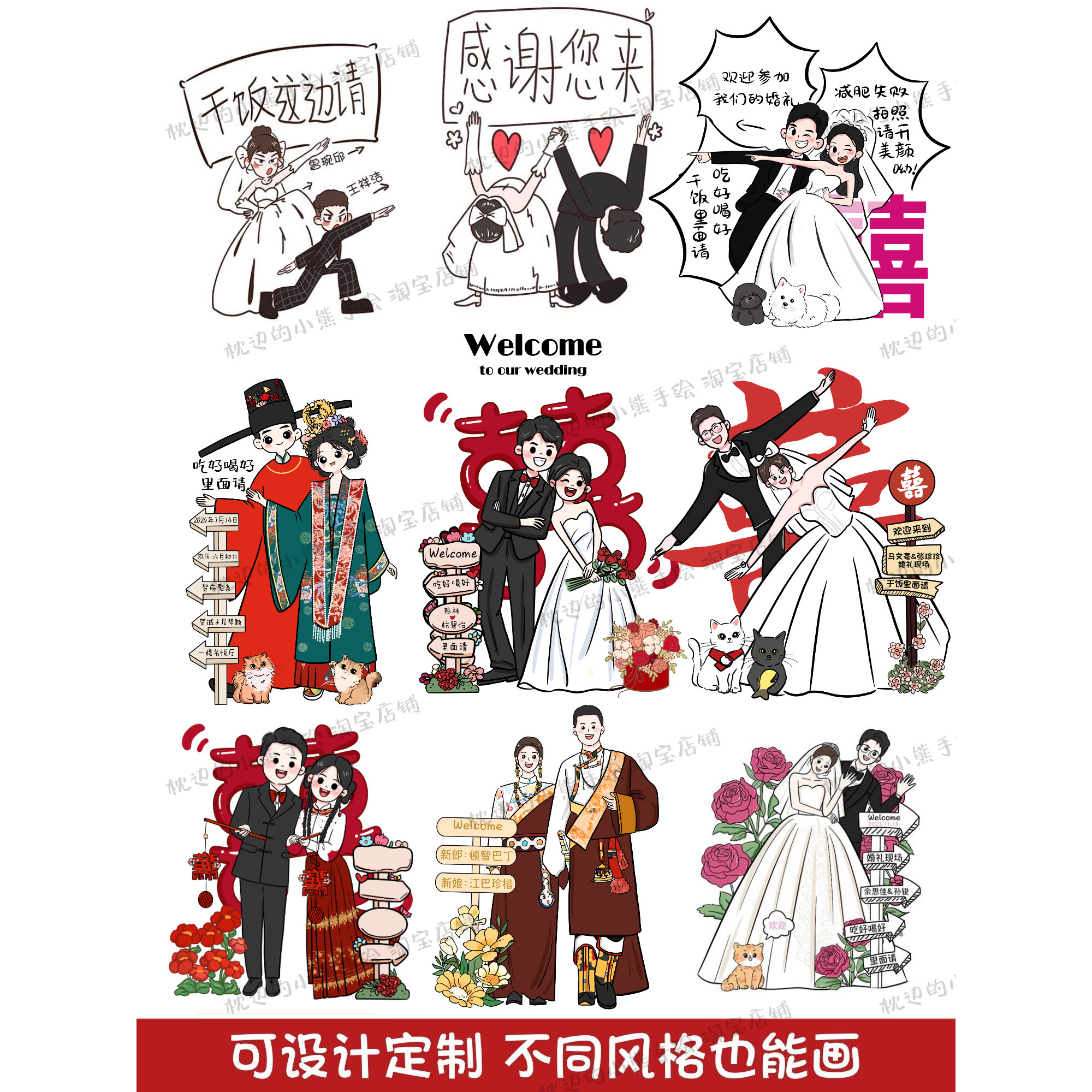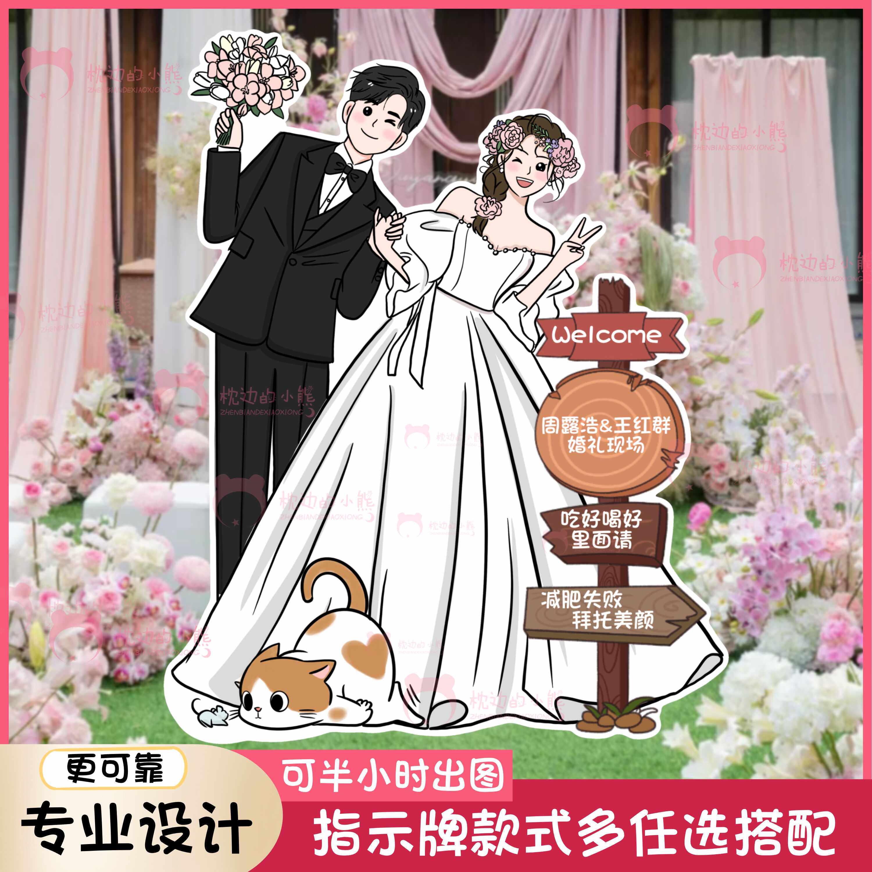 📚 结婚订婚布置装饰婚礼人形立牌手绘漫画卡通迎宾牌指示牌kt板定制