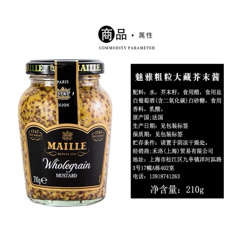 📚 魅雅第戎粗粒芥末酱210g Mustard sauce 牛排罗非鱼颗粒芥末籽酱