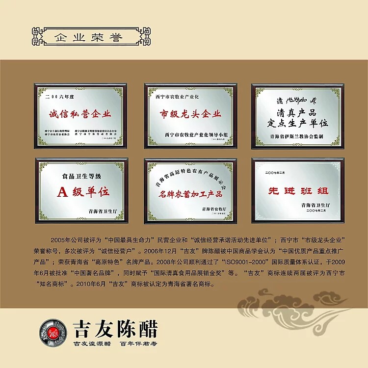 📚 青海特产吉友湟源8年老陈醋460g瓶装青稞醋香醋熏醋老醋王包邮