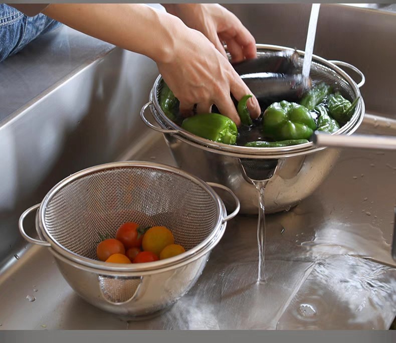 📚 日本进口家事问屋304不锈钢料理盆带壶嘴备菜盆厨房洗菜盆沥水篮