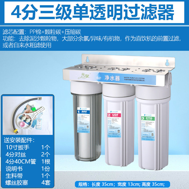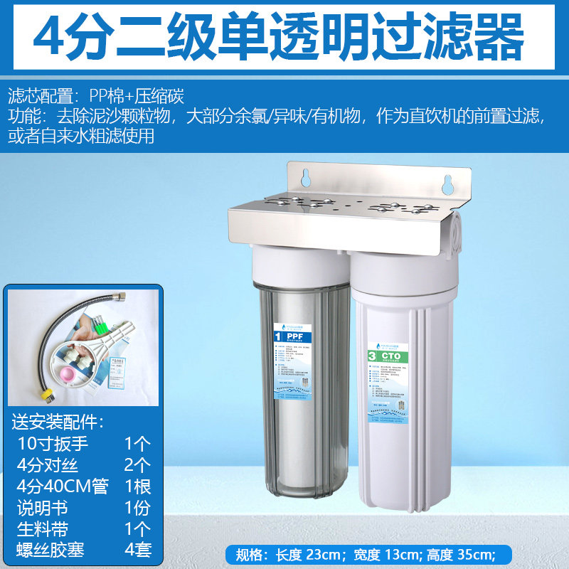 📚 10寸二级前置过滤器三胞胎大流量粗滤泥沙余氯PP厨房自来水净水机