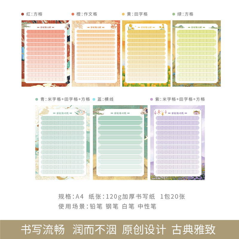 📚 懿心阁硬笔书法作品纸学生国风彩虹田字格练字专用纸钢笔字A4纸