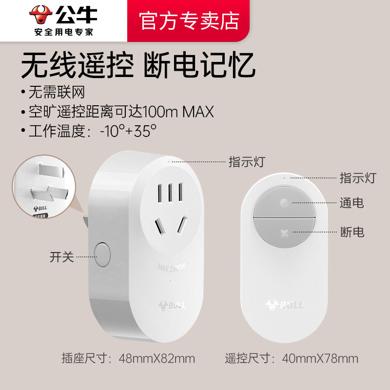 📚 公牛无线遥控开关插座免布线220v家用遥控器远程控制电源水泵插排