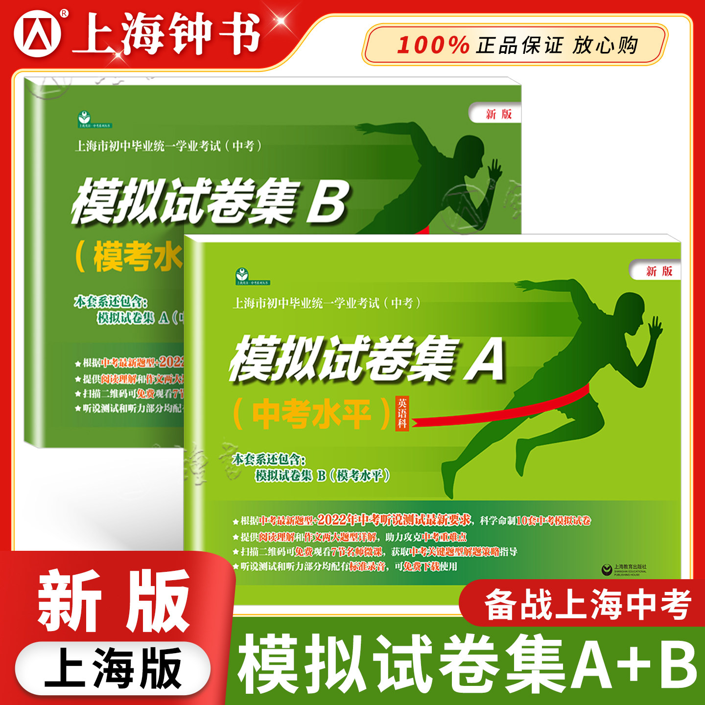 📚 上海中考英语模拟试卷集A+B上海市初中毕业统一学业考试 英语科 中考+模考水平 扫码获取音频 附含10套中考模拟试卷