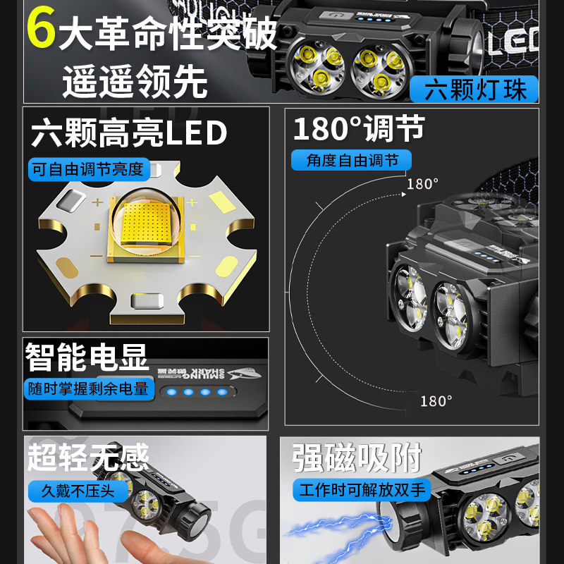 📚 强光头灯工地安全帽专用感应户外登山超长续航超亮2025新款头戴式