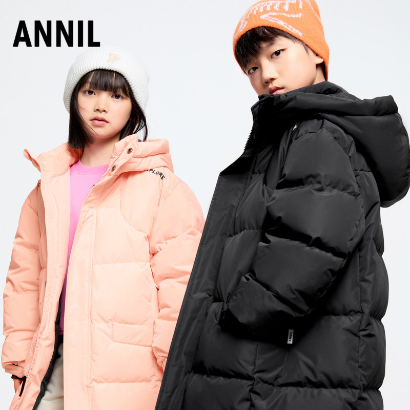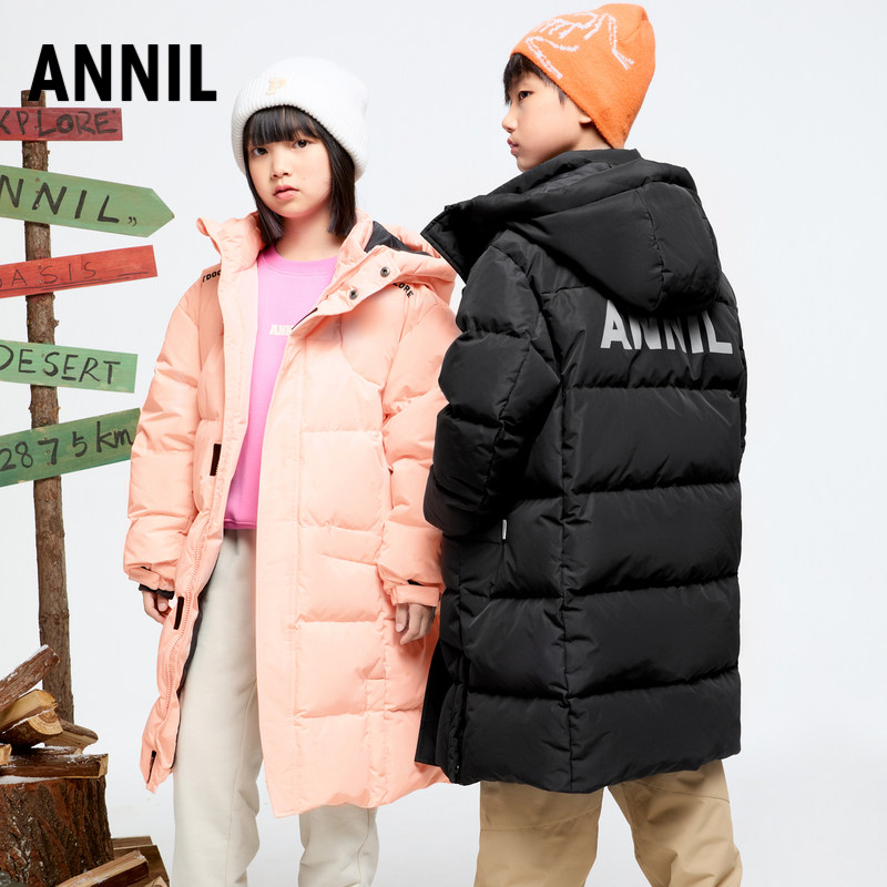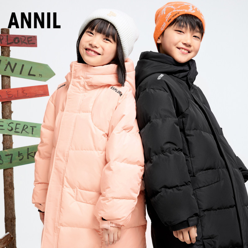 📚 安奈儿童装男童女童长款鹅绒羽绒服冬休闲科技防寒连帽