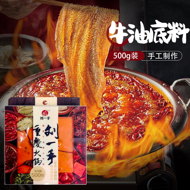 📚 刘一手手工重庆牛油火锅底料500g礼盒装 (口味:中辣中麻)