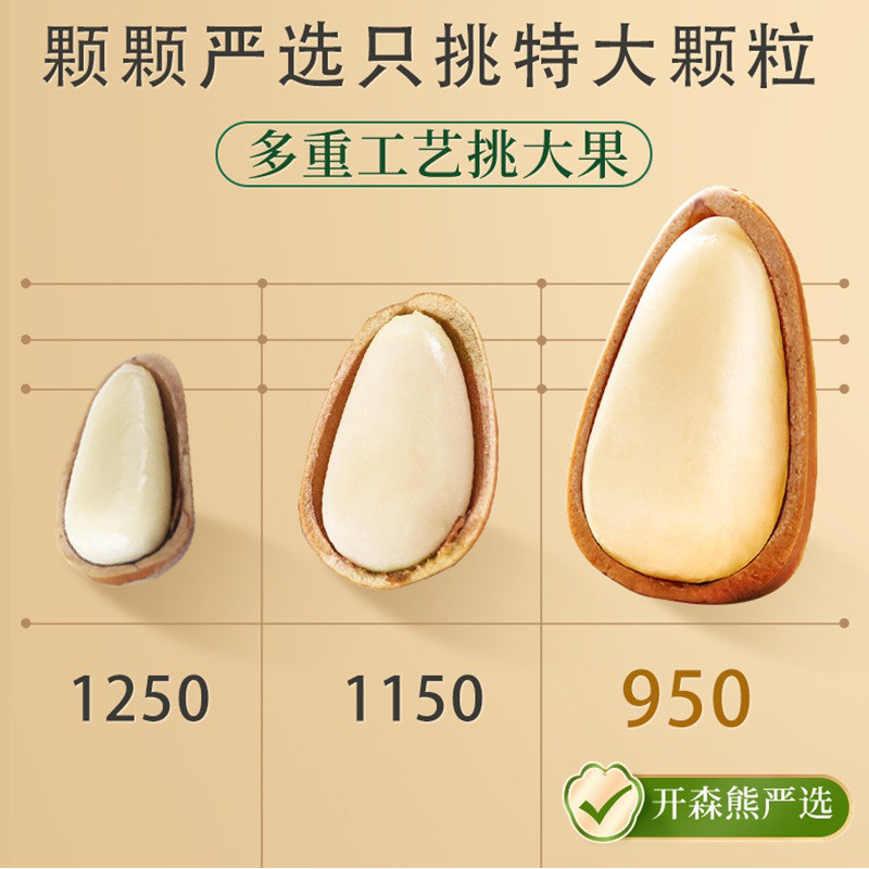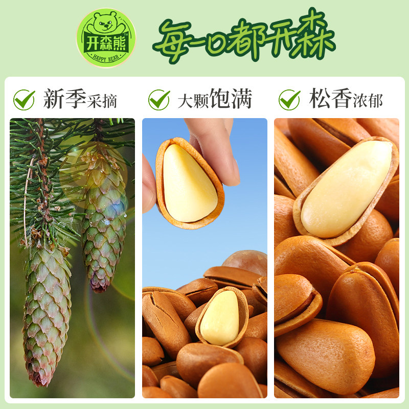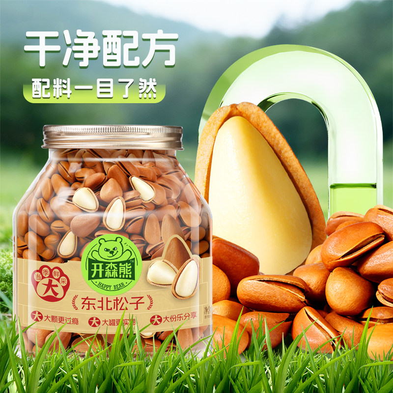 📚 开森熊950型东北松子500g干果果仁特大手剥坚果零食