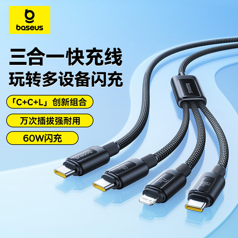 📚 BASEUS 60W 3 in 1 USB C to Type C Cable三合一快充数据线适用于iPhone17 16华为安卓多功能车载USB-C充电
