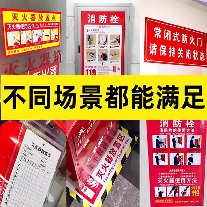 📚 消防栓灭火器放置点标识牌消火栓使用方法门箱年检标签贴纸自粘消防标识标牌说明防火门安全标识牌警示牌定制