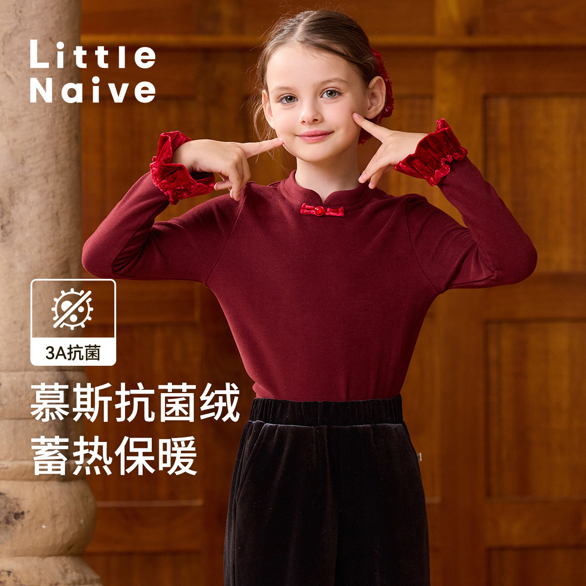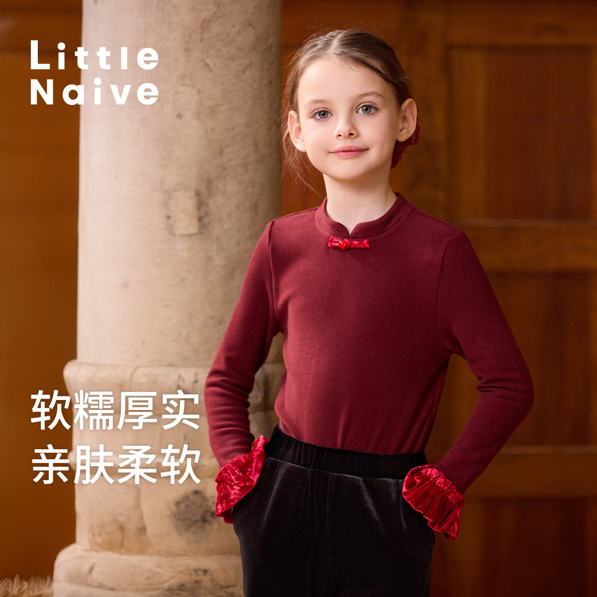 #LittleNaive #女童新中式打底衫 #秋冬款柔软亲肤T恤 #旗袍领上衣 #种草笔记