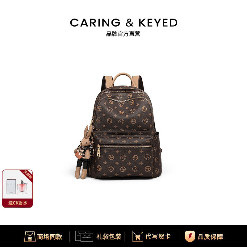 📚 Caring&Keyed书包双肩包女士2026新款时尚大容量旅行旅游学生背包