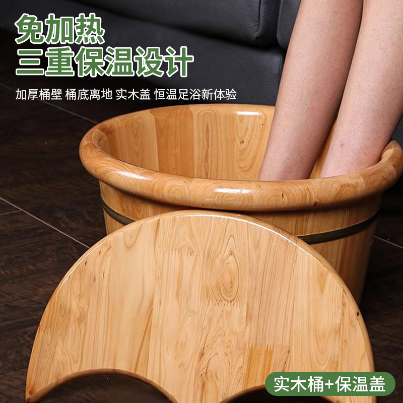 📚 泡脚木桶家用实木洗脚桶木桶保温泡脚桶木质足浴桶养生按摩泡脚盆