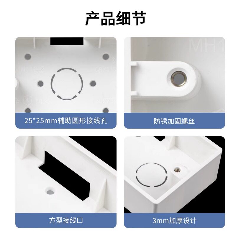 📚 118型明装通用二位三位四位接线盒开关插座大中小长方底盒墙壁