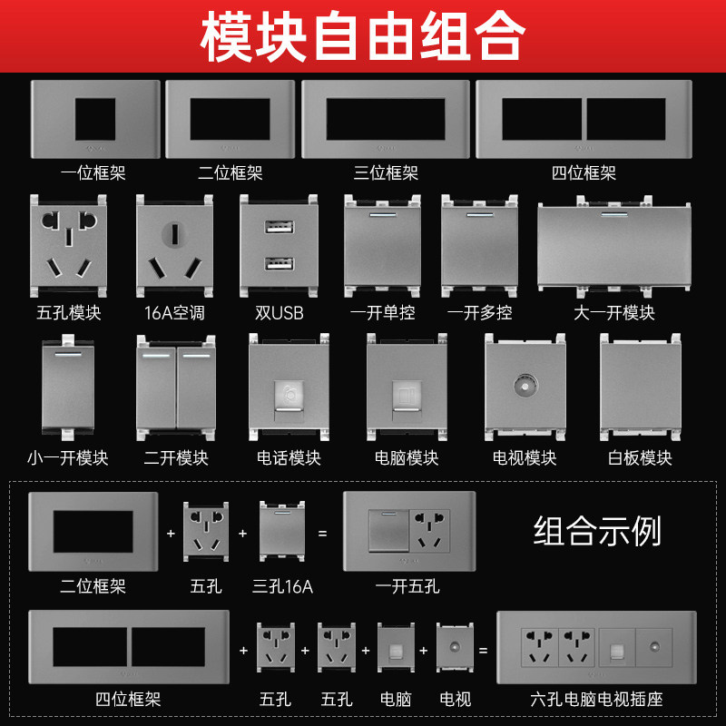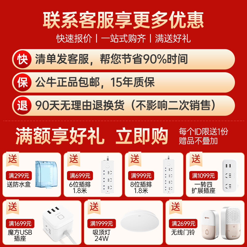 📚 公牛118型开关插座面板墙壁暗装多孔模块嵌入式五孔电源大功率16A