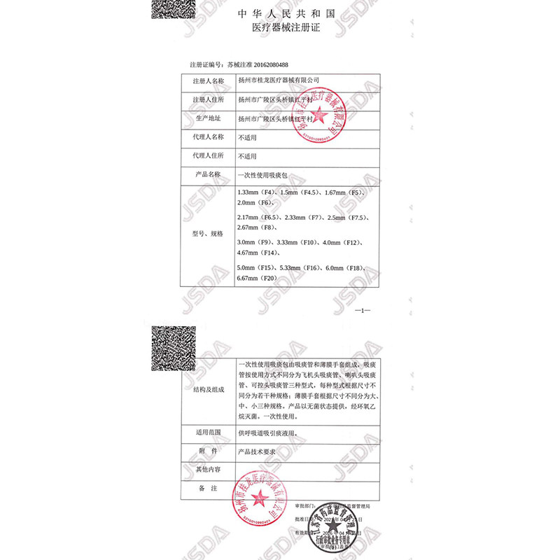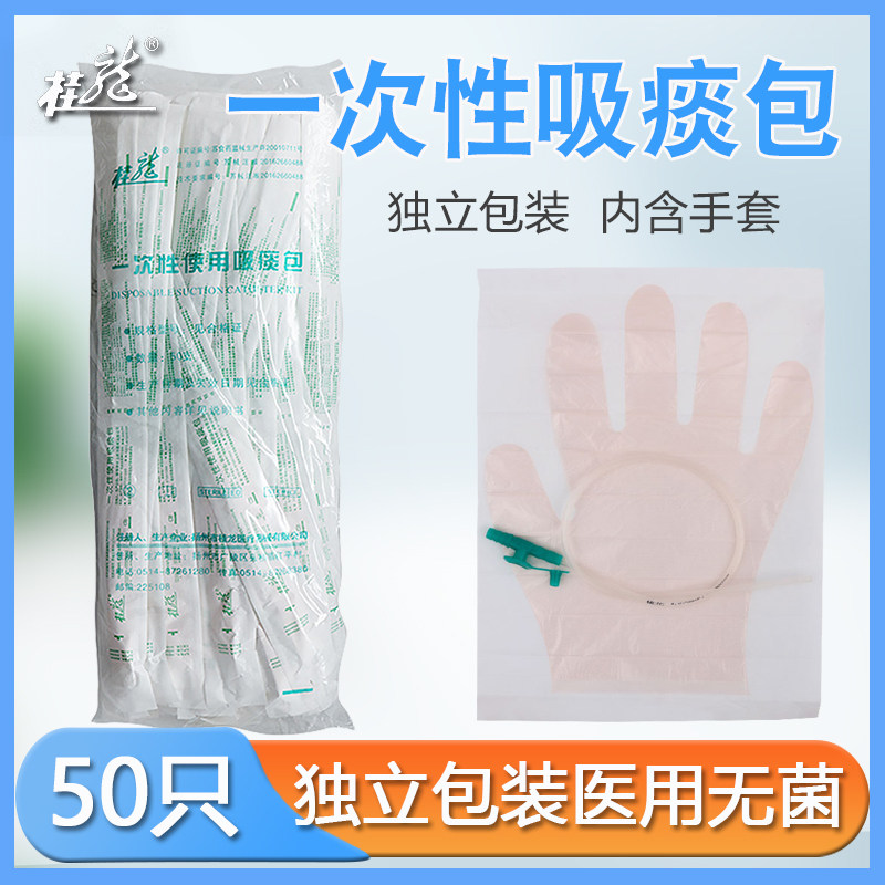📚 桂龙一次性使用无菌吸痰管带手套吸痰器软管家用医用吸痰包密闭式