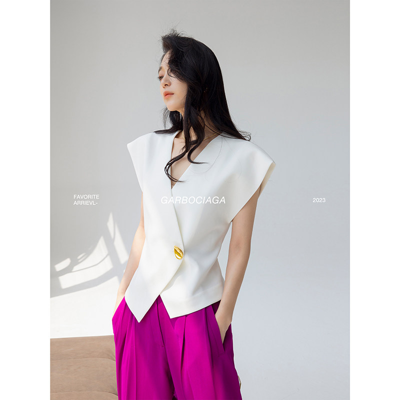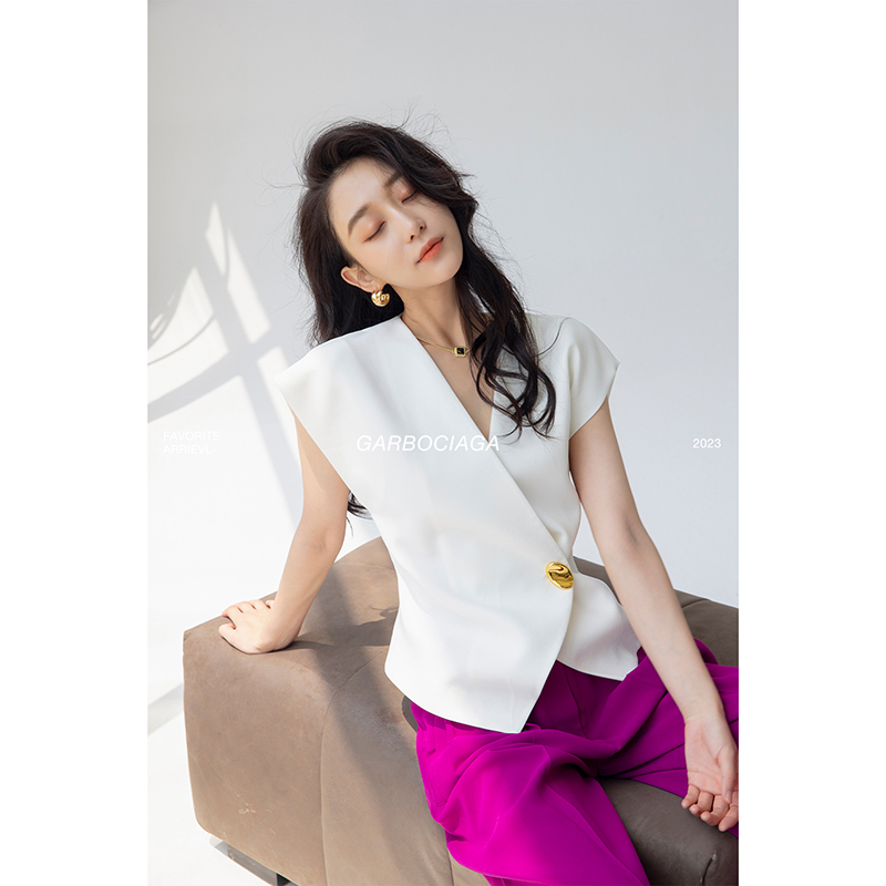 📚 Garbociaga龍喜儿 与众不同 V领气质时髦一字肩直角肩小外套 2392
