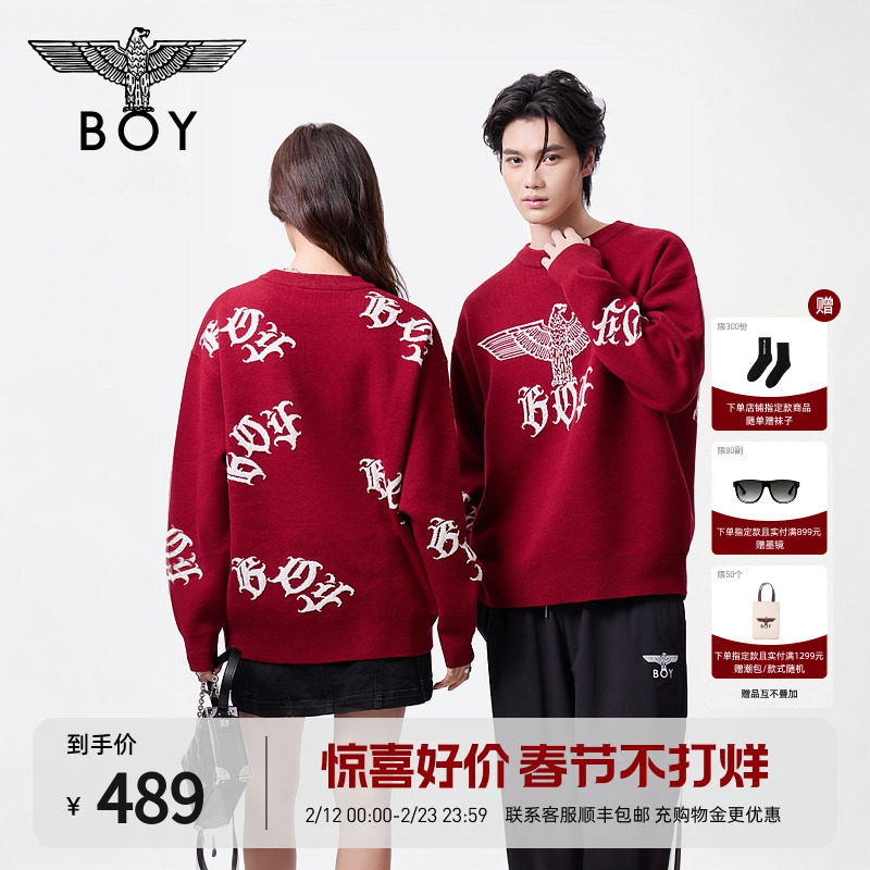 📚 BOYLONDON冬季毛衣圆领套头潮流运动保暖上衣针织男女同款N60036