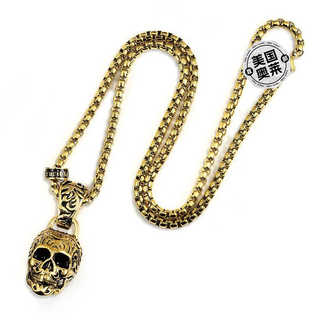 📚 自营 crucible坩埚洛杉矶金不锈钢 35 毫米骷髅项链配 28 英寸 5