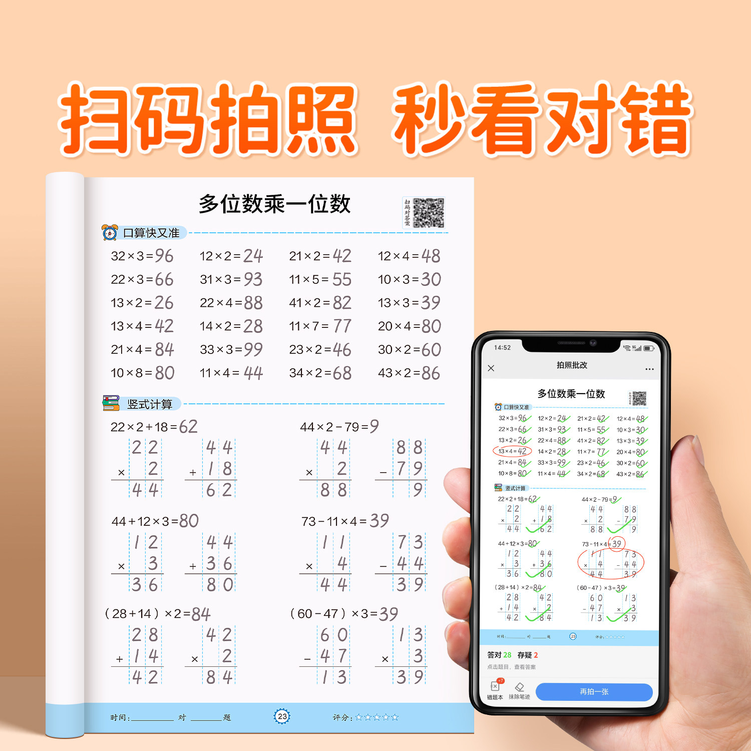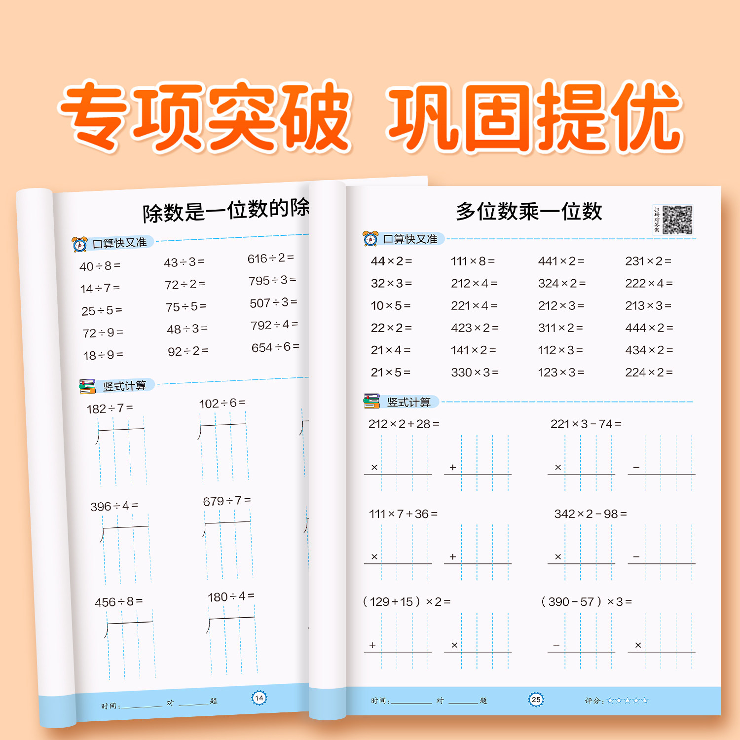 📚 三年级上册下册口算题天天练数学计算题强化训练口算题卡人教版同步练习题横式脱式竖式小学3年级上下学期数学应用题思维专项训练