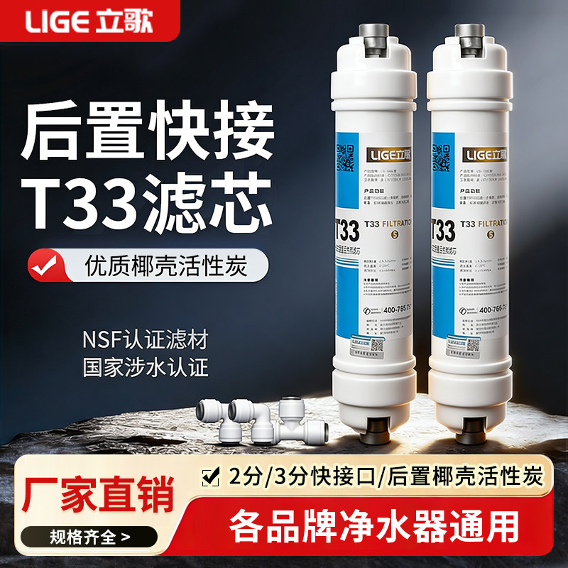 📚 后置活性炭T33通用一体快接滤芯家用直饮纯水机过滤器净水器配件