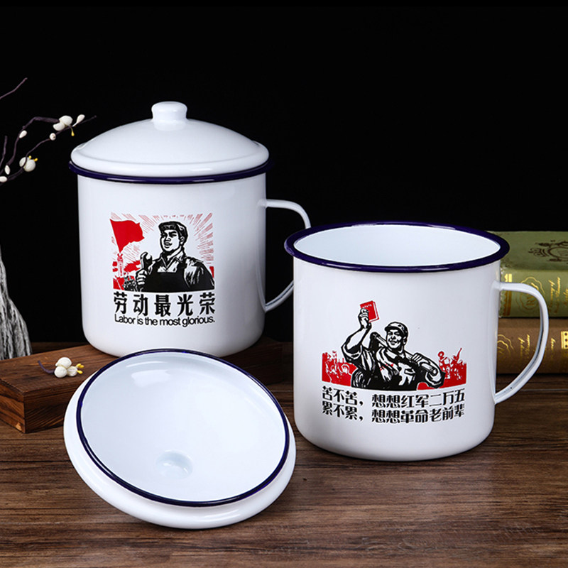 🔥特大搪瓷杯带盖茶缸子!老式怀旧风,超大号大容量,让你爱不释手💖