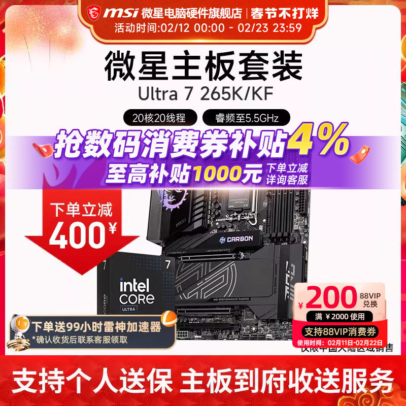 88¥ HU293 RIQxUoEyhES¥ https://m.tb.cn/h.7B5SwKV INTEL 酷睿 Ultra 7 265K盒装 搭微星 Z890 主板CPU套装 --------------------- 【原售价】3,554元 【优惠券】400元 【券后价】3,154元。