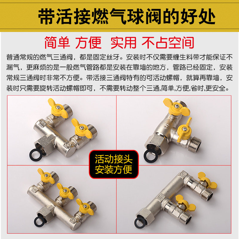 📚 4分活接三通三角阀四通燃气煤气阀门天然气开关球阀一分二路三路