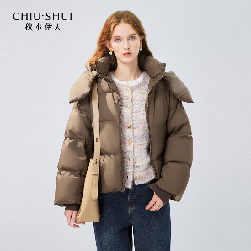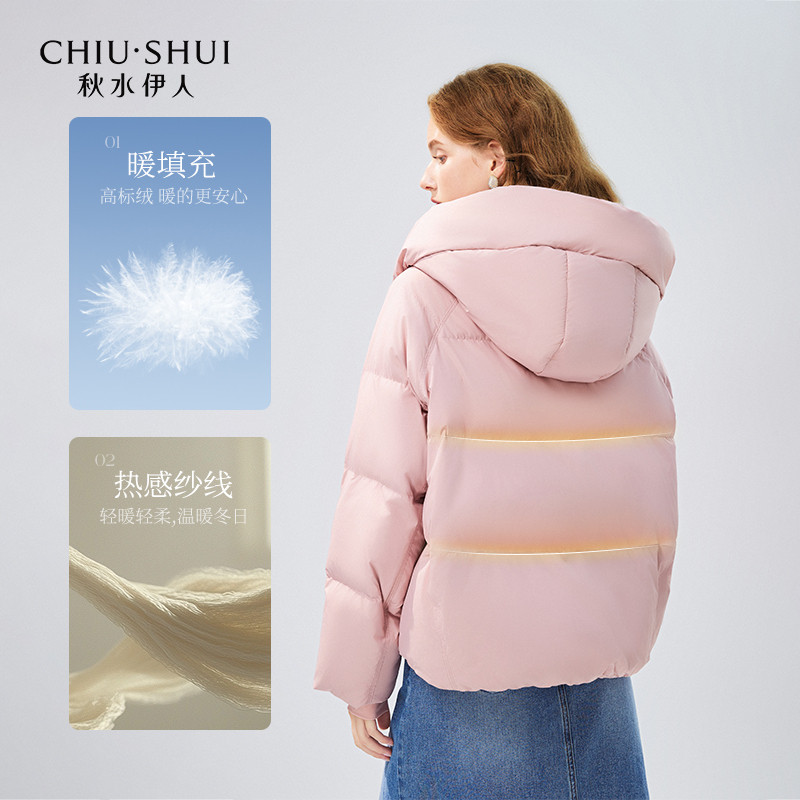 📚 秋水伊人休闲连帽短款羽绒服2026春季新款女装小个子90白鸭绒外套