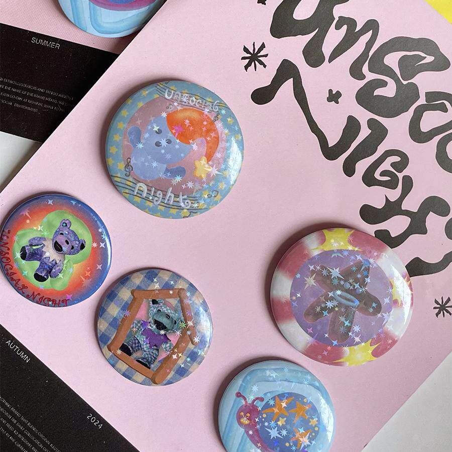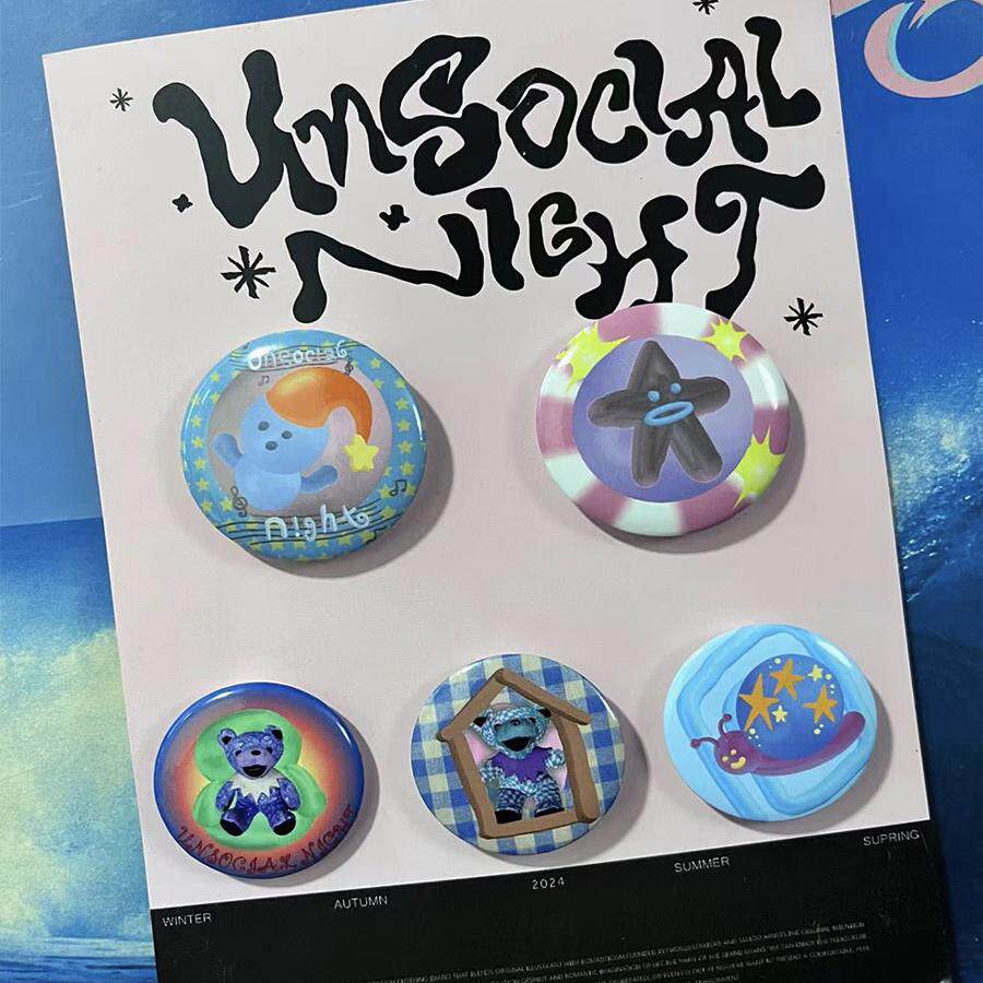 📚 UnsocialNight原创插画马口铁徽章吧唧五枚入可爱闪膜动漫装饰