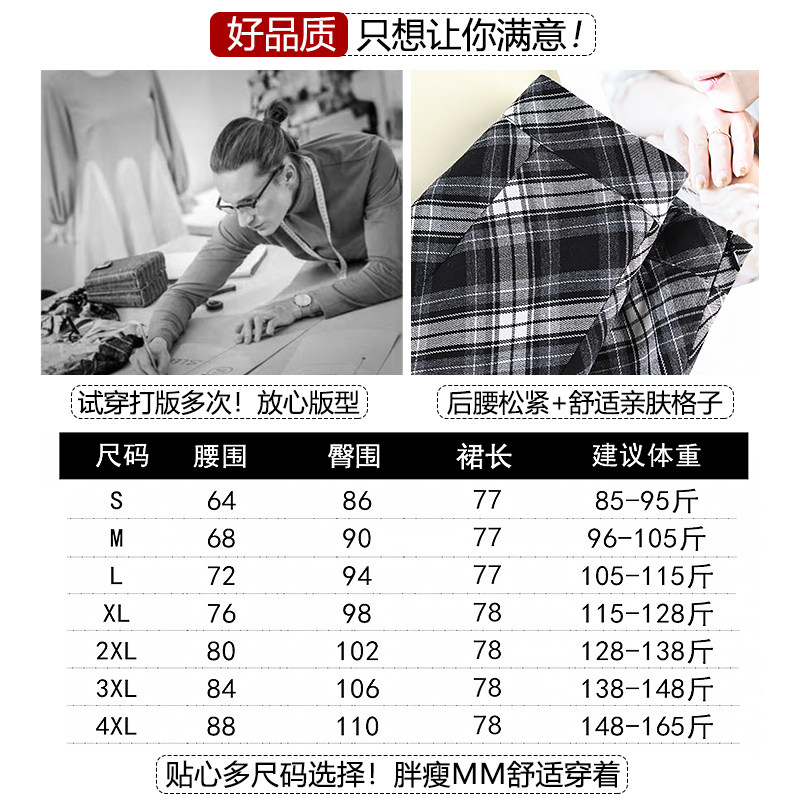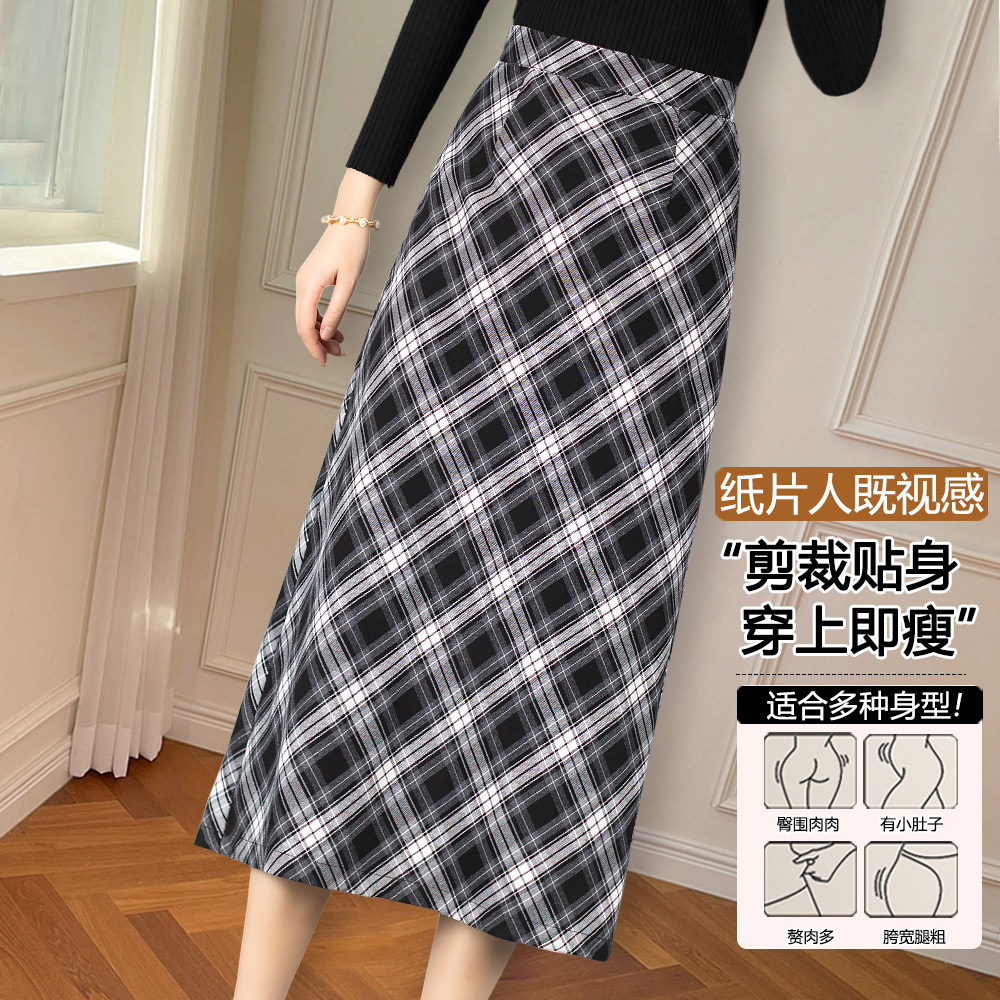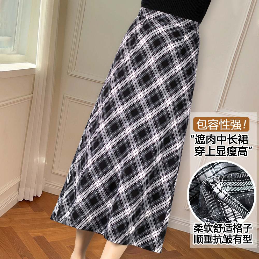 📚 黑白格子半身裙秋冬款高个子加长格纹 a字版2025春夏大码灰色裙子