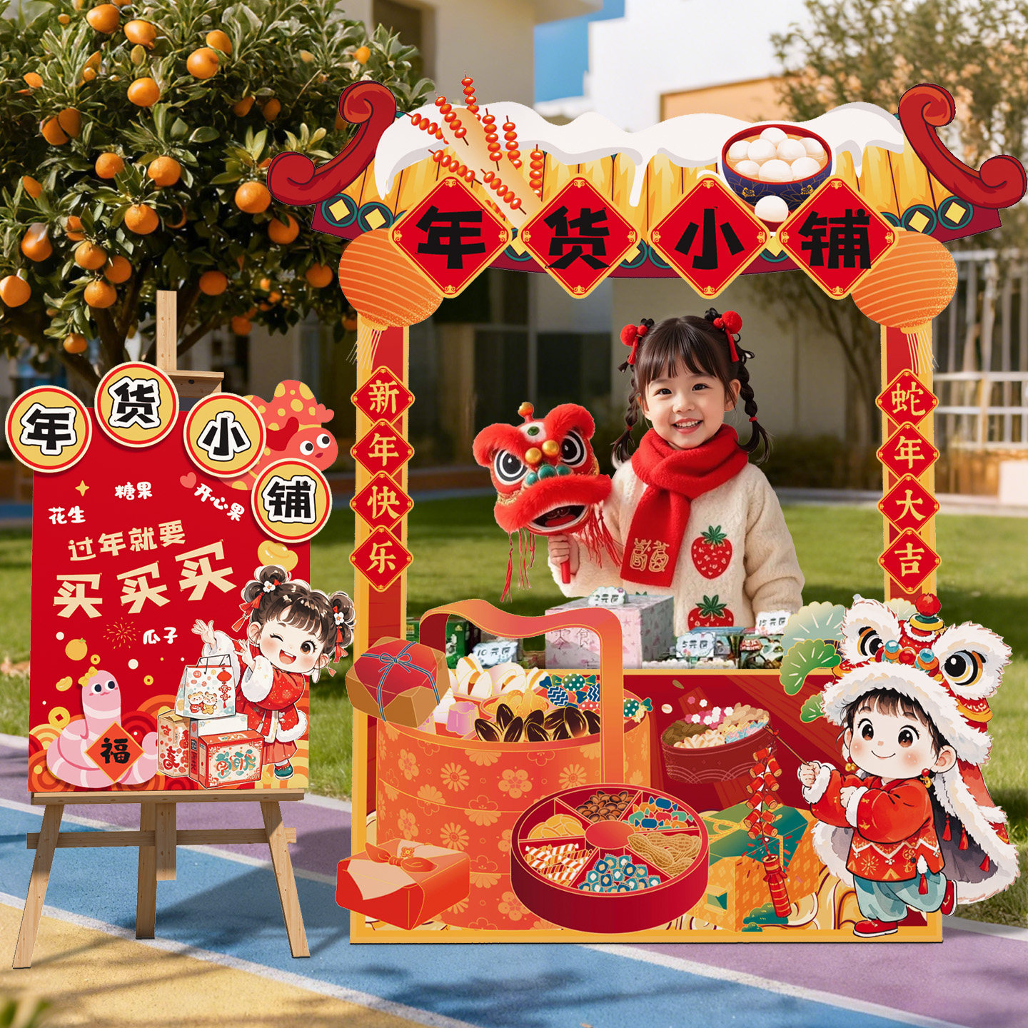 📚 新马年装饰场景布置2026元旦氛围幼儿园年庙会摊位装饰背景墙KT板