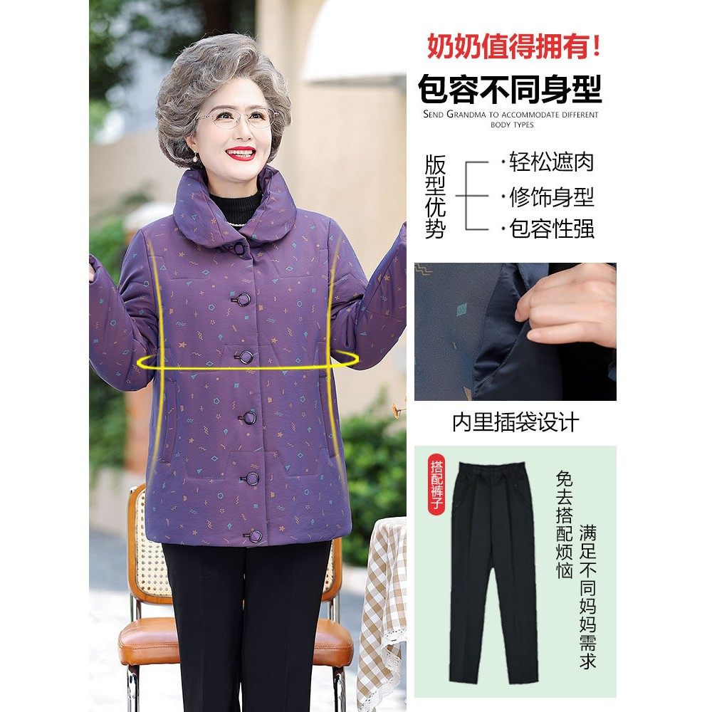 📚 奶奶冬装加厚棉服外套2023新款老年人妈妈冬季羽绒棉棉衣姥姥棉袄