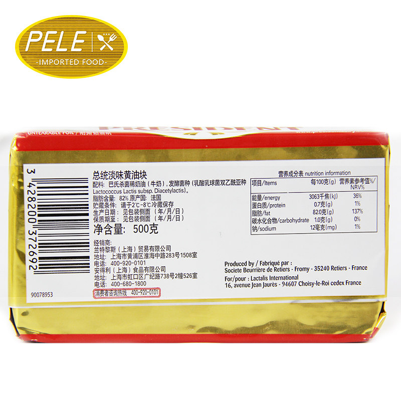 📚 总统黄油500g*2块法国进口淡味动物黄油块家用烘焙牛排牛轧糖原料