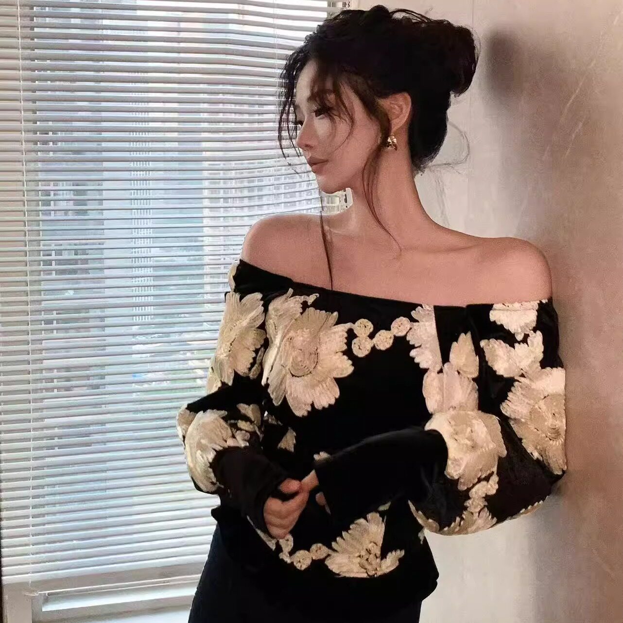 📚 利达 NEW DADADA【甜嗓知性】一字肩露肩设计小众长袖衬衫上衣女
