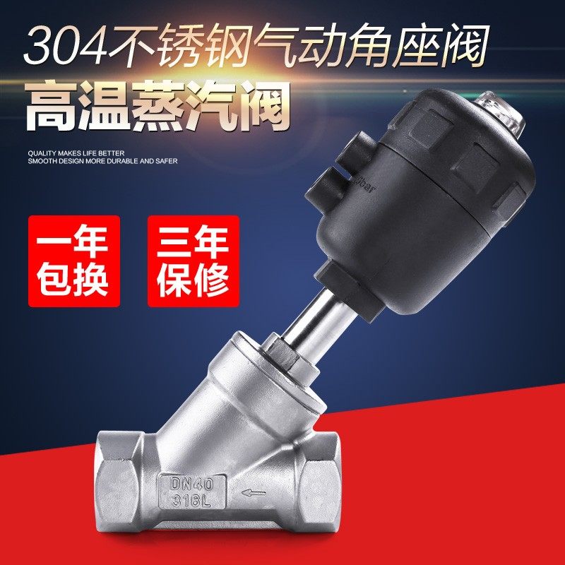 📚 304不锈钢气动角座阀蒸汽气动阀不锈钢角座阀Y型高温自动控制阀门