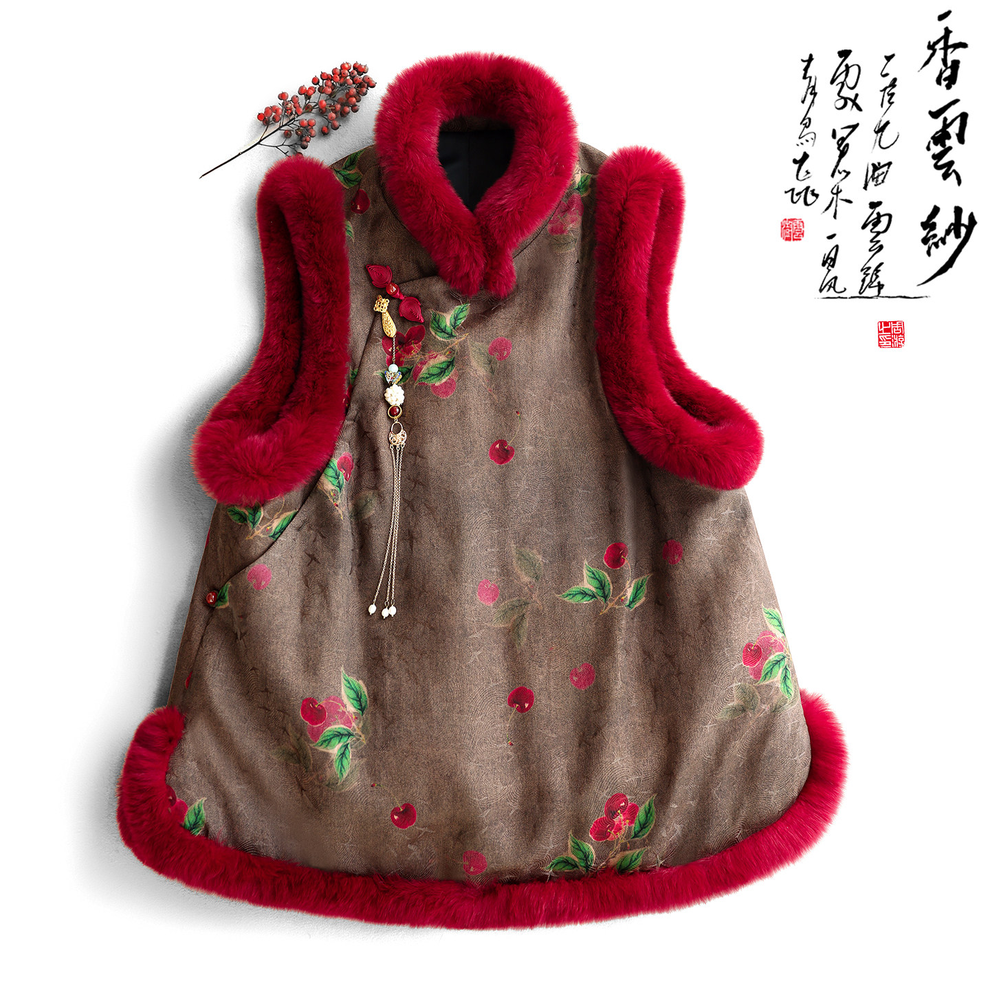 💥种草!云澍花罗香云纱新中式国风真丝桑蚕丝立领加棉马甲上衣,冬日温暖新宠🧣