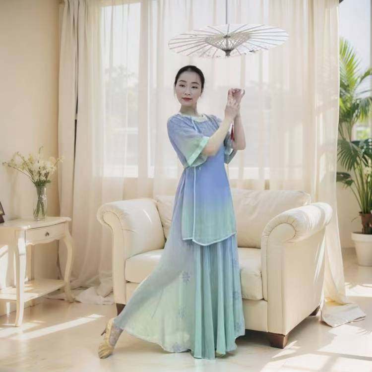 📚 诗意花朵古典舞服唐风三件套青衫烟雨客服装清风徐来汉唐舞蹈裙女