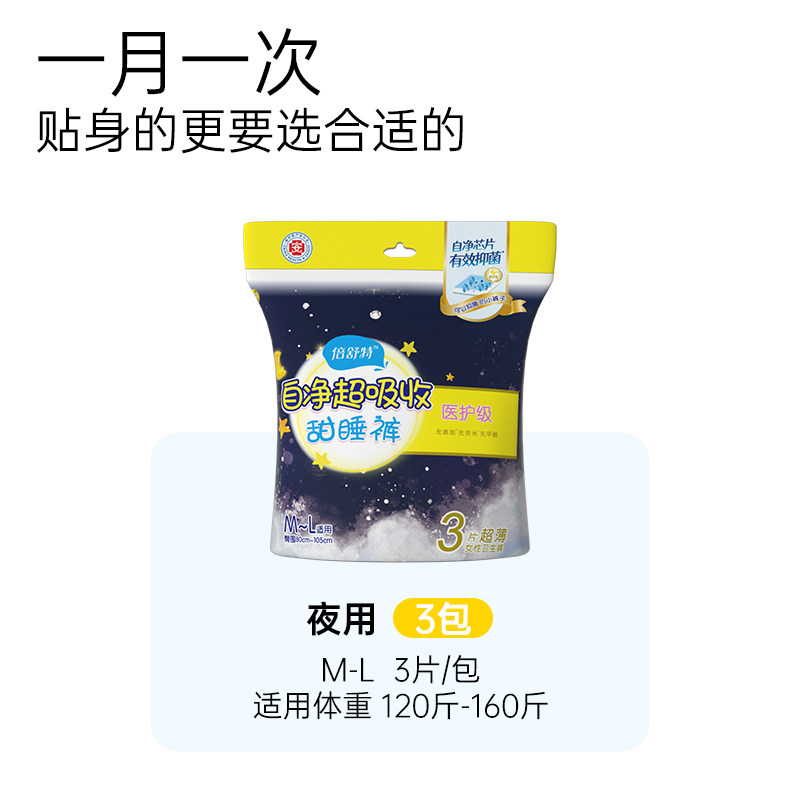 📚 【全项符合新国标】倍舒特裤型卫生巾夜用安睡裤安心裤防漏M-L码