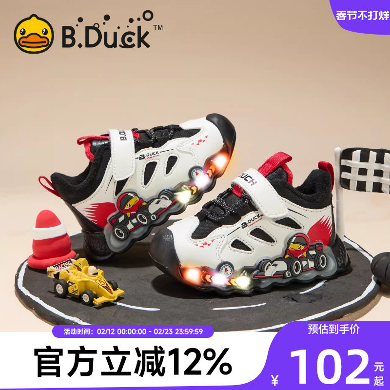 📚 小黄鸭童鞋男童运动鞋儿童二棉男宝宝鞋加绒秋冬小童亮灯鞋闪灯鞋