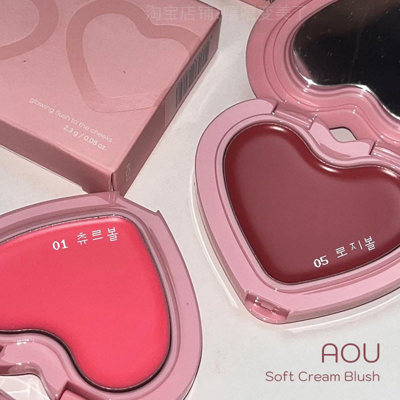 📚 AOU爱心腮红膏水光哑光奶油质地氛围感膨胀色softcream柳智敏同款