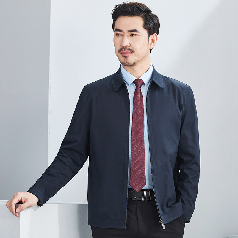 📚 红都男装外套秋季新款商务休闲拉链上班工装中青年翻领男士棉夹克