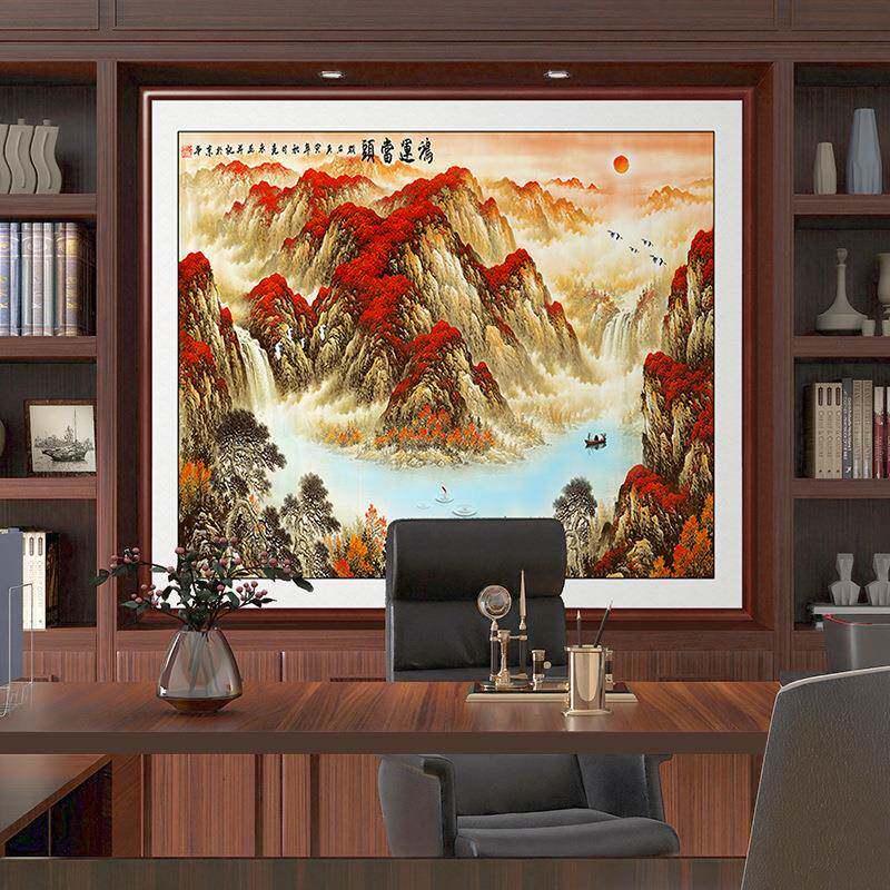 📚 山水画办公室挂画老板办公桌壁柜背景画靠山图风水壁画装饰画