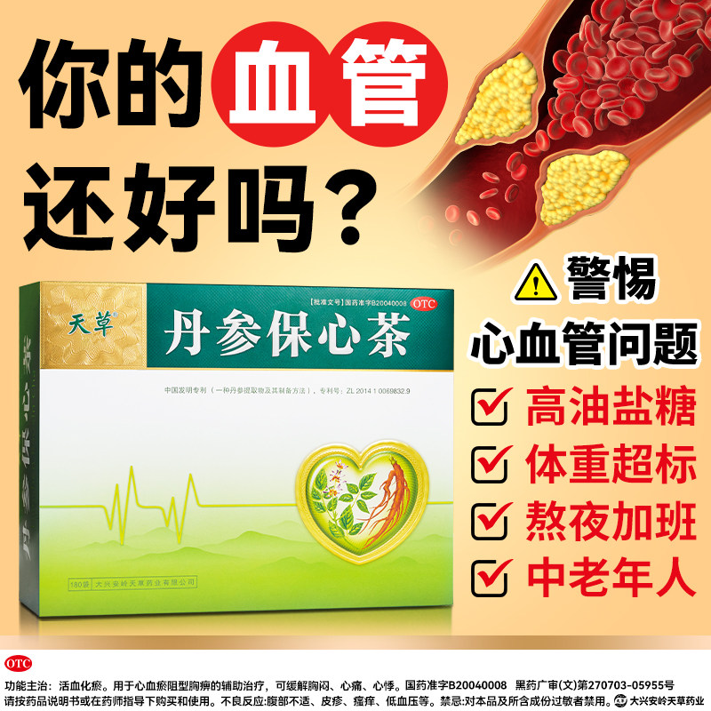 📚 天草丹参保心茶官方旗舰店通心脑血管药胸闷心痛心悸丹参茶保心茶