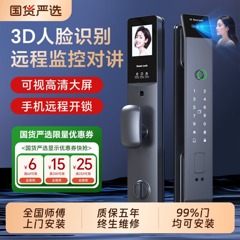 📚 智能门锁家用防盗门指纹锁识别入户门密码锁带监控可视电子锁摄像